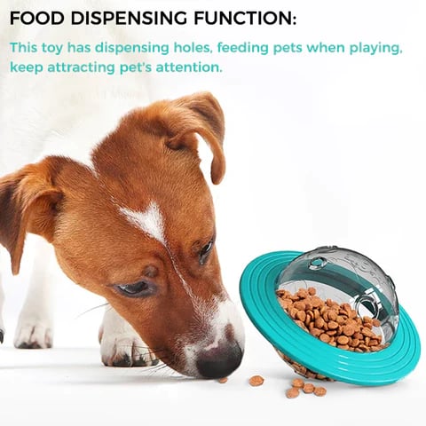 - Rewards Yummy Kibbles: Dogs are built to spend hours working for their food. However, we as pet owners give it away in a bowl just like that which leads to a sense of dissatisfaction. With the flying saucer dispenser toy, your dog will always feel like he earned it, relieving his instinctual urge to work for it.