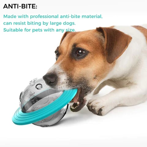 It’s a treat dispensing toy shaped just like a flying saucer to help slow down fast eaters while also being super fun. Features several leakage holes from where the snack falls out when your pet pokes and chases the toy around the house. When the kibbles run out, use the saucer to play fetch with your furry friend!